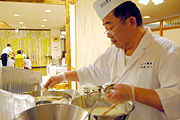 | 十勝産牛にぎわいフェア宿泊プラン特別メニュー。 「十勝産牛陶板焼き」と「十勝産牛しゃぶしゃぶ」が付いた『彩り会席料理』。 十勝の味覚を存分に満喫できる料理だ。 |